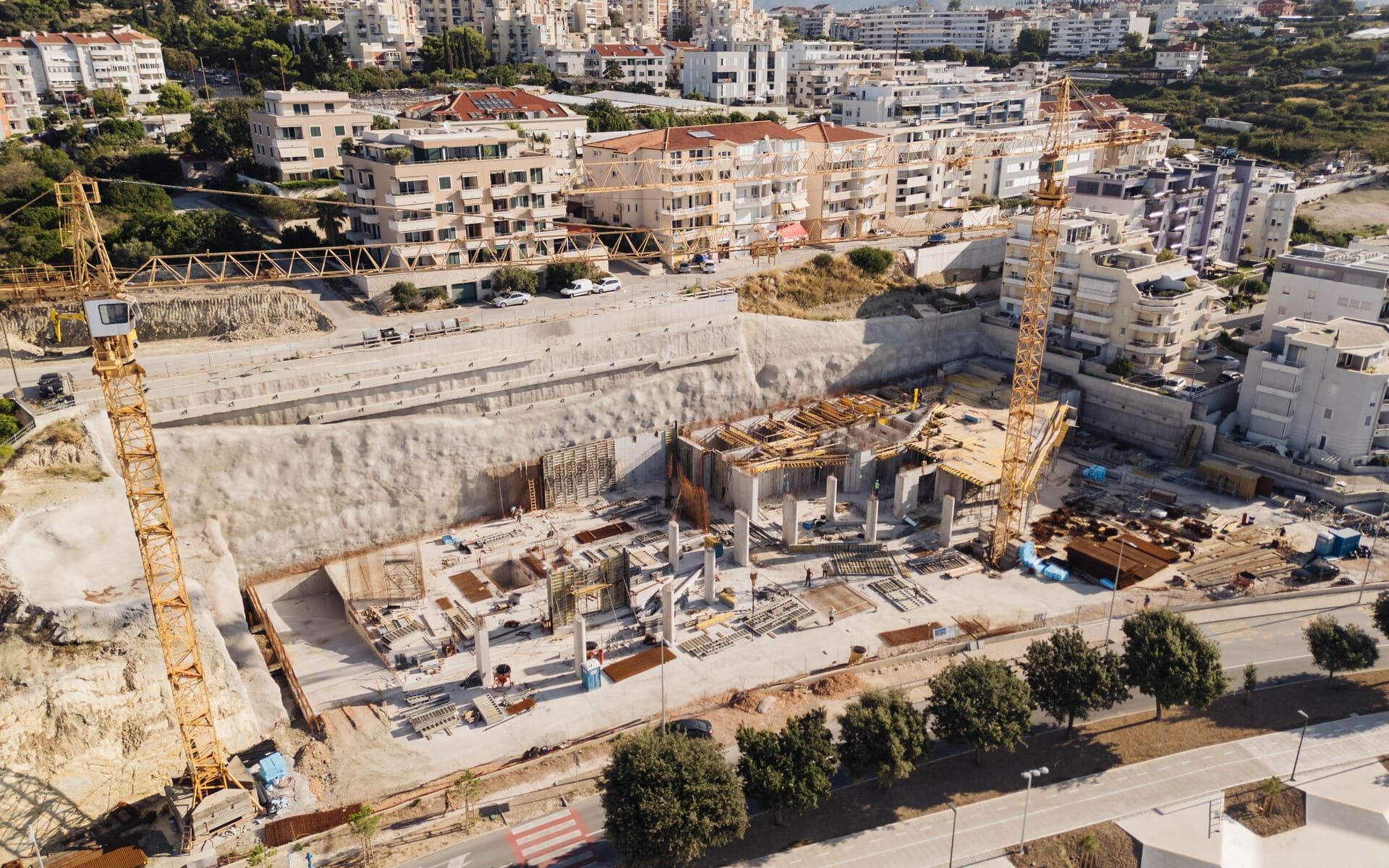 - Project Description: Construction of a luxury aparthotel under the prestigious Mövenpick brand (Accor Group), located on the prime seafront of Split’s Žnjan district. The development features two basement levels and six above-ground storeys, housing 156 guest units, a wellness centre, a signature restaurant, and a rooftop terrace with a pool and lounge bar. The project required complex geotechnical works to secure a 25-metre-deep excavation, alongside high-precision coordination of interior fit-outs to meet international brand standards. This development is a cornerstone of the urban transformation of the Žnjan plateau.
